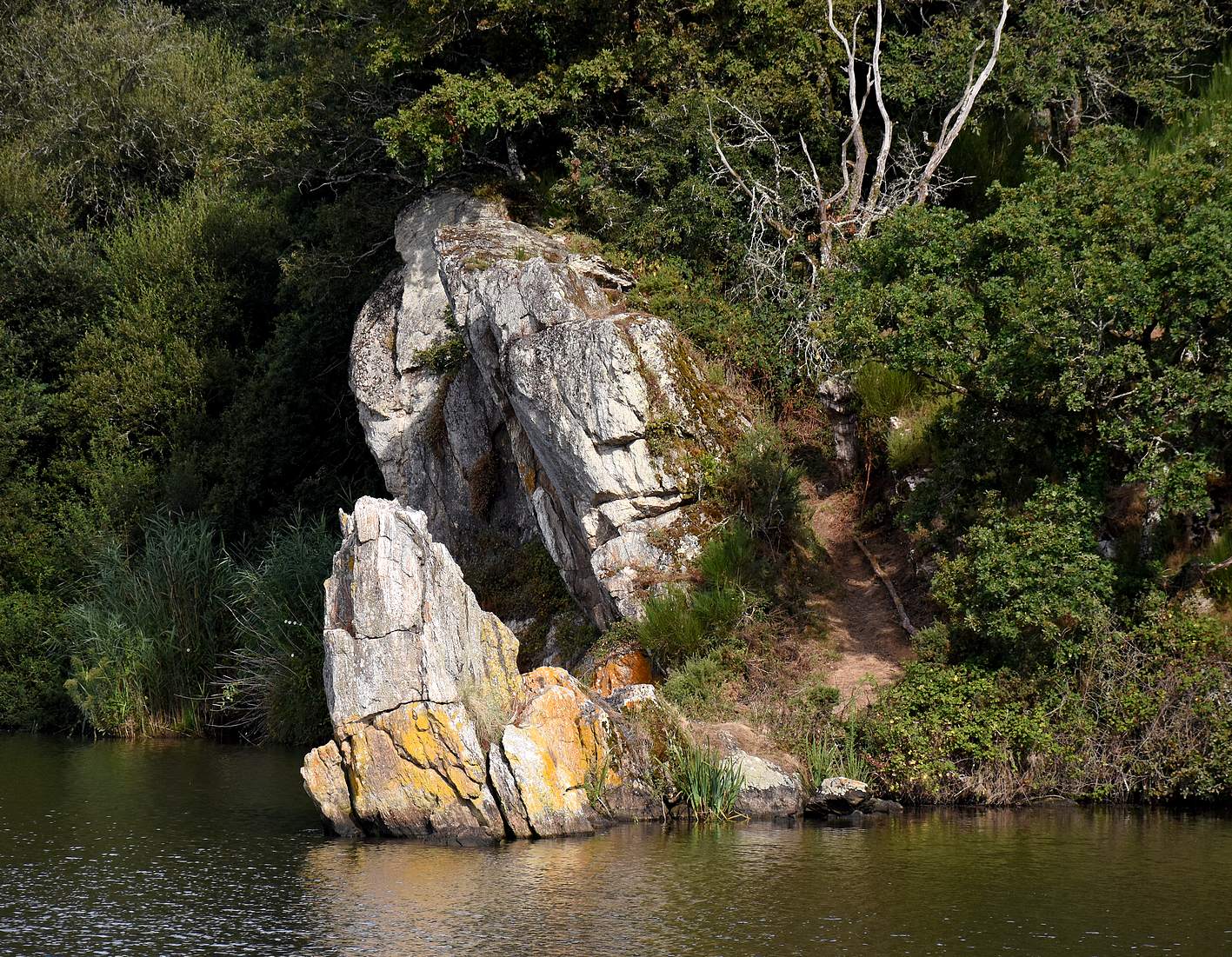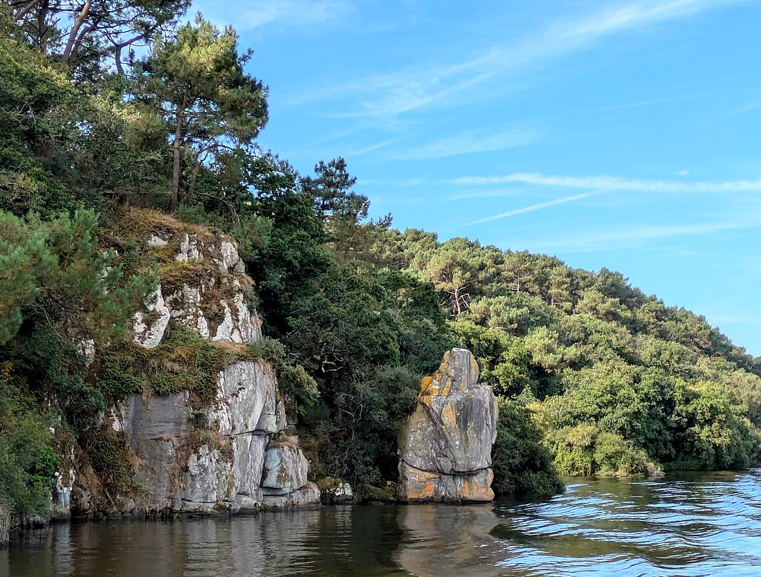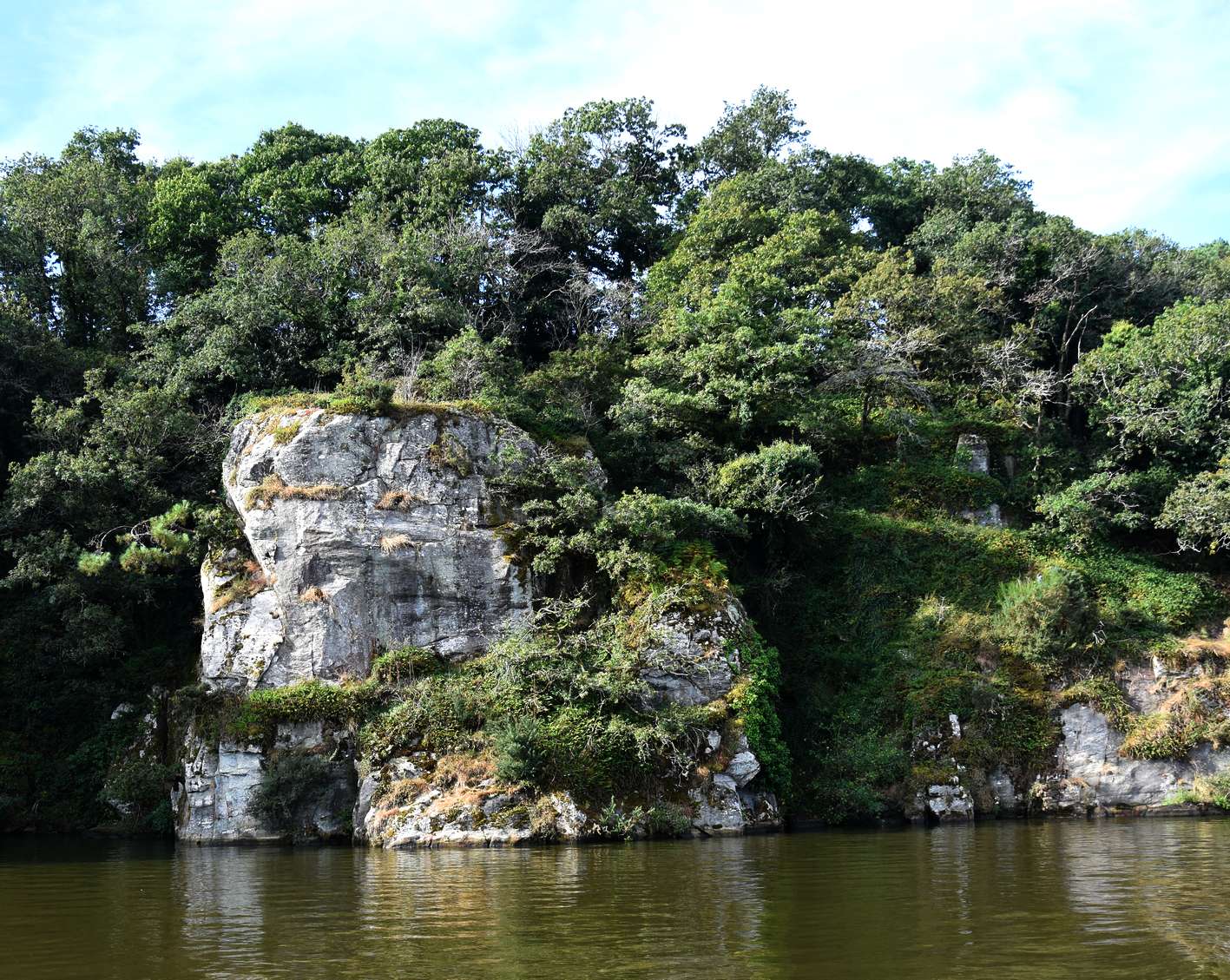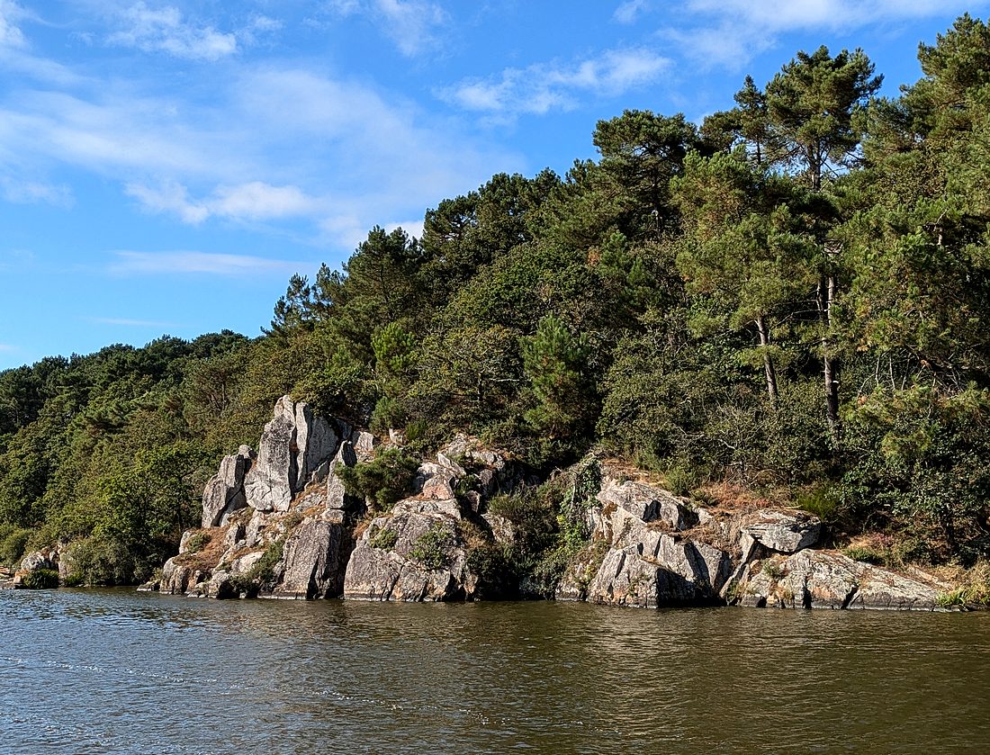 Très vite on se retrouve dans un environnement naturel grandiose. Les rives sont assez abruptes et très boisées, des formations rocheuses prennent le soleil du matin.