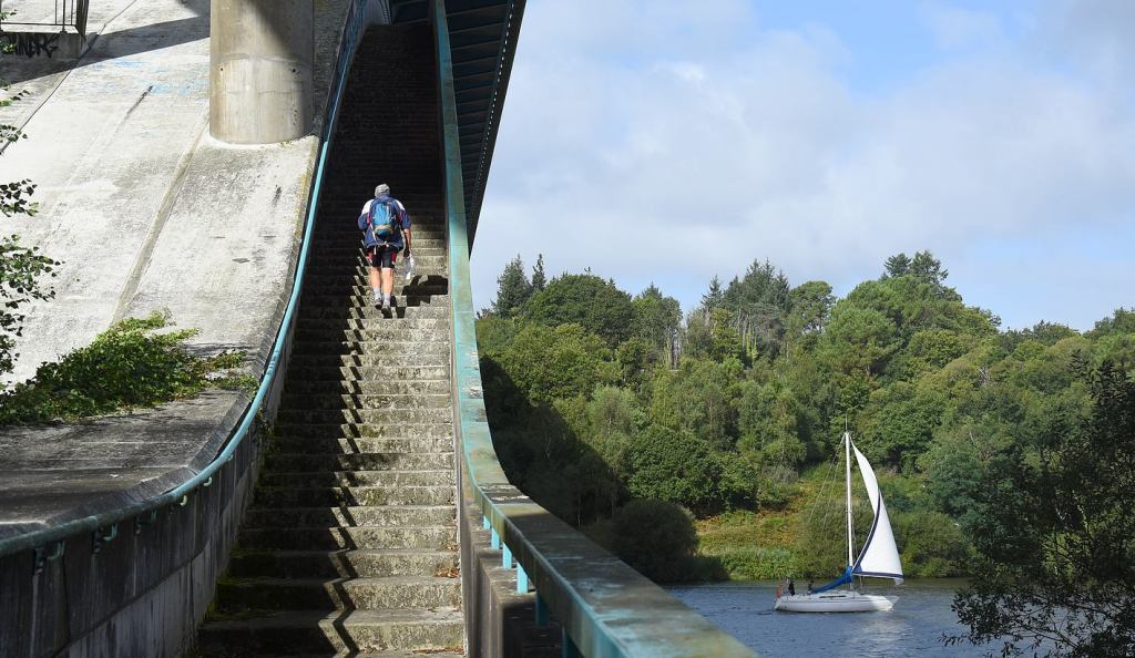 … le pont du Morbihan comporte une passerelle piétonne sous le tablier ? J’ai eu l’occasion de la tester car une jolie rando (Le circuit des ponts) passe par là. L’occasion de découvrir le fleuve d’en haut !