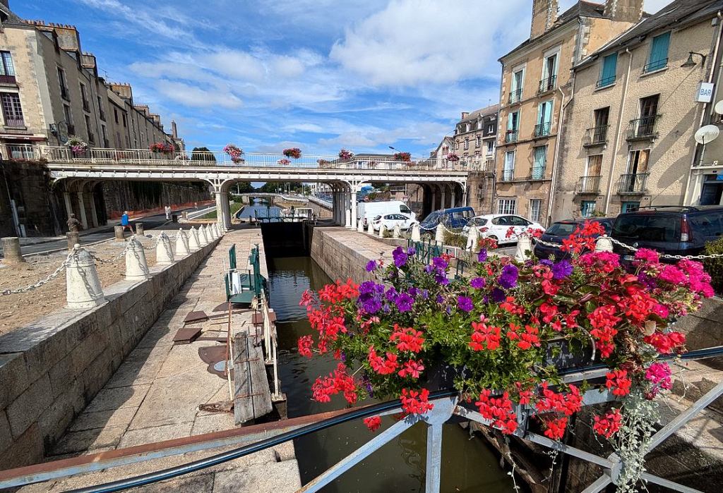 Au bout de 42 km (sur les 218 que fait la Vilaine, 11e fleuve de France) le bateau s’amarre à un beau quai ancien, quasiment en pleine ville. Nous avons trois heures, le temps de déjeuner et de flâner dans Redon, petite ville au riche patrimoine architectural, religieux et portuaire. Tiens, elle représente aussi le troisième département du jour : Loire-Atlantique au départ de Saint-Nazaire, Morbihan à Arzal et pour la plus grande partie sur le fleuve et enfin Ille-et-Vilaine pour les quelques heures passées à Redon. Puisque je vous disais que j’ai fait un « grand » voyage !
