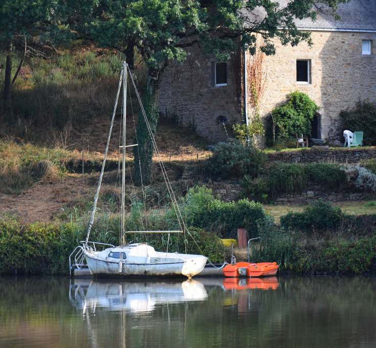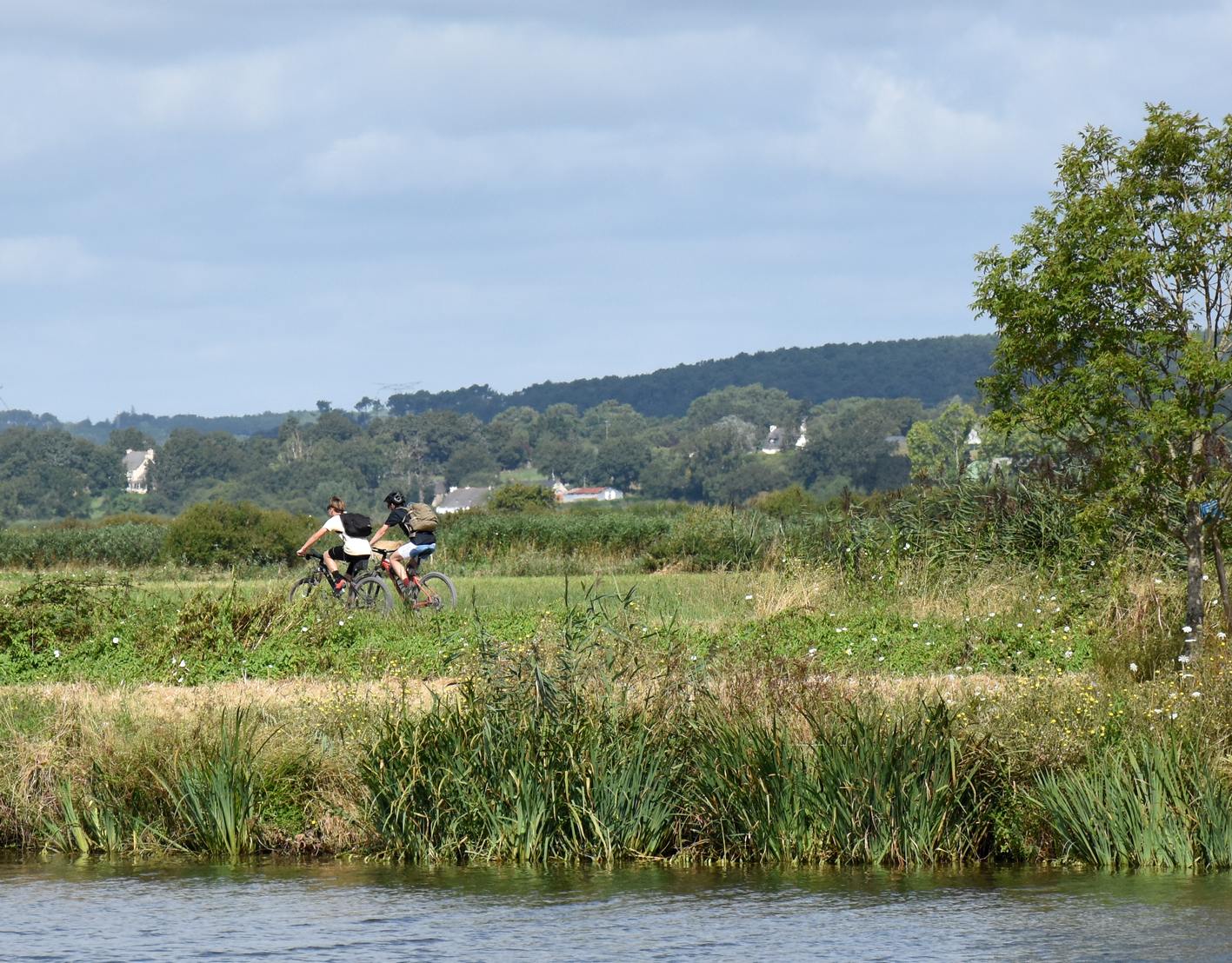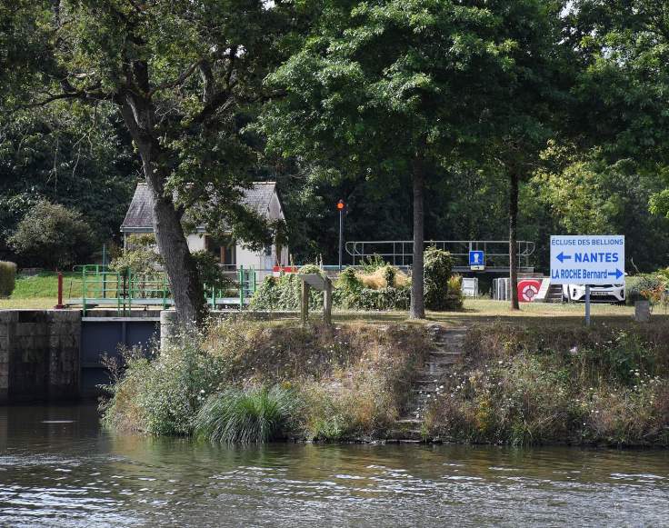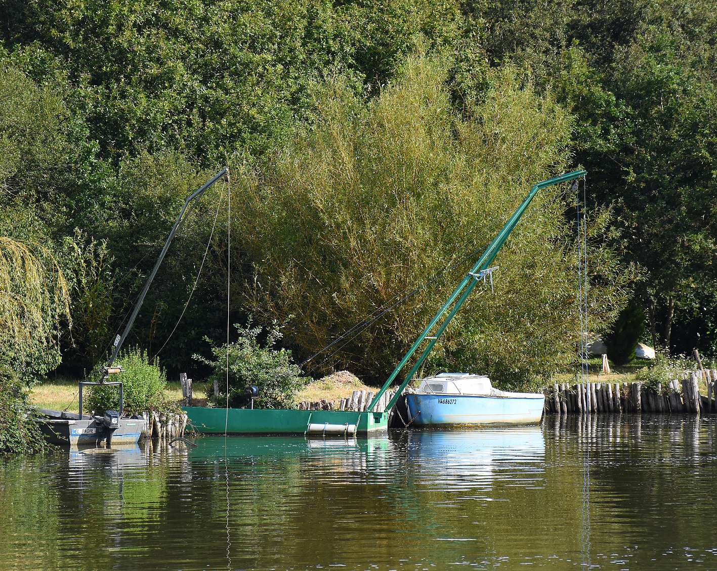 La Vilaine doit être très poissonneuse. Enormément d’engins de pêche, des carrelets plus ou moins bricolés, sont installés sur l’une ou l’autre rive ou directement dans le cours du fleuve. Et les pêcheurs sont nombreux, soit dans de petites embarcations, soit campés au bord de l’eau, avec le parasol, toute la famille et le panier de pique-nique pour plus tard.