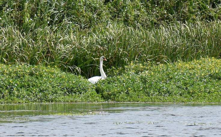 Je m’amuse à guetter des reflets, tant des effets miroir proches des berges que des distorsions dues aux remous que notre bateau crée dans l’eau.