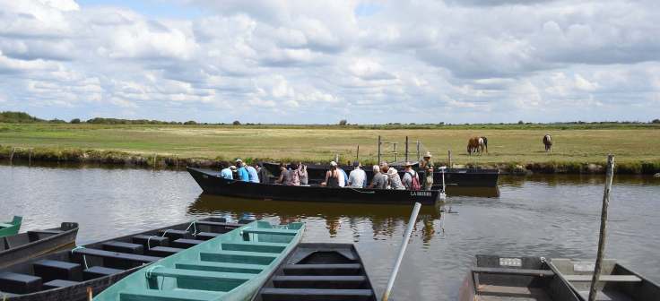 8c – Ces trois lieux-dits sont des points de départ pour des promenades en chaland très appréciées, comme on le voit sur la photo ci-dessous, prise à La Chaussée Neuve. Mais autrefois ce furent de véritables ports de commerce et de communication entre les communes briéronnes de part et d’autre du marais et avec l’extérieur (j’en parle dans mon article consacré à La Chaussée Neuve, dans l’encadré en bas de la page). Les trois ports – puisqu’on les appelle toujours ainsi – sont situés sur des communes différentes : La Chaussée Neuve à Saint-André-des-Eaux, Rozé à Saint-Malo-de-Guersac et Bréca à Saint-Lyphard. Quant à l’ancien chantier de construction navale, il y en avait un à Rozé.