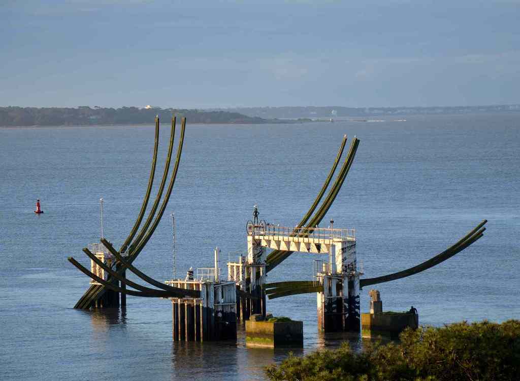 7a – Les « ailes » de ces gigantesques « moulins à vent » s’appellent des pales. Celles des éoliennes du parc en mer, mis en service en décembre 2022, sont vraiment très grandes : chacune fait 73,50 m de long. Leur arrivée en cargo spécial, leur stockage (photo ci-dessous) et leur transport vers le chantier en mer ne sont pas passés inaperçus dans le port de Saint-Nazaire, comme je le raconte dans un article dédié aux « nouveaux géants de Saint-Nazaire ».