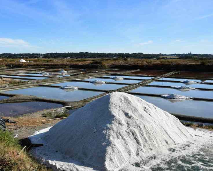 4b – Les mulons, ce sont ces énormes tas de sel qui « poussent » en bordure des bassins au fur et à mesure que la récolte avance. Les petites pyramides de sel que les paludiers amassent sur les plateformes rondes au milieu des bassins s’appellent des « ladurées ». Je vous raconte tout ça ici.