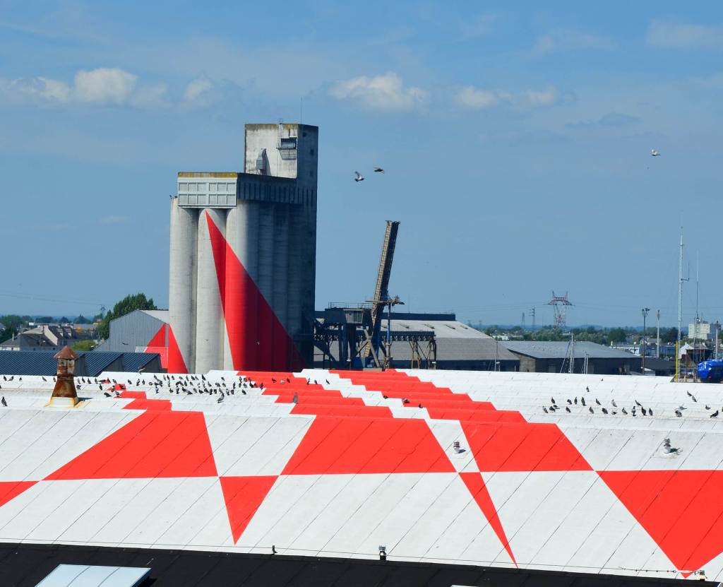 2b – Le monument à l’abolition de l’esclavage est l’œuvre de l’artiste Jean-Claude Mayo, d’origine réunionnaise. Felice Varini a bien réalisé une œuvre dans le port de Saint-Nazaire mais c’est une anamorphose, une « illusion optique » à grande échelle, la célèbre Suite de Triangles rouges (j’en parle ici).
