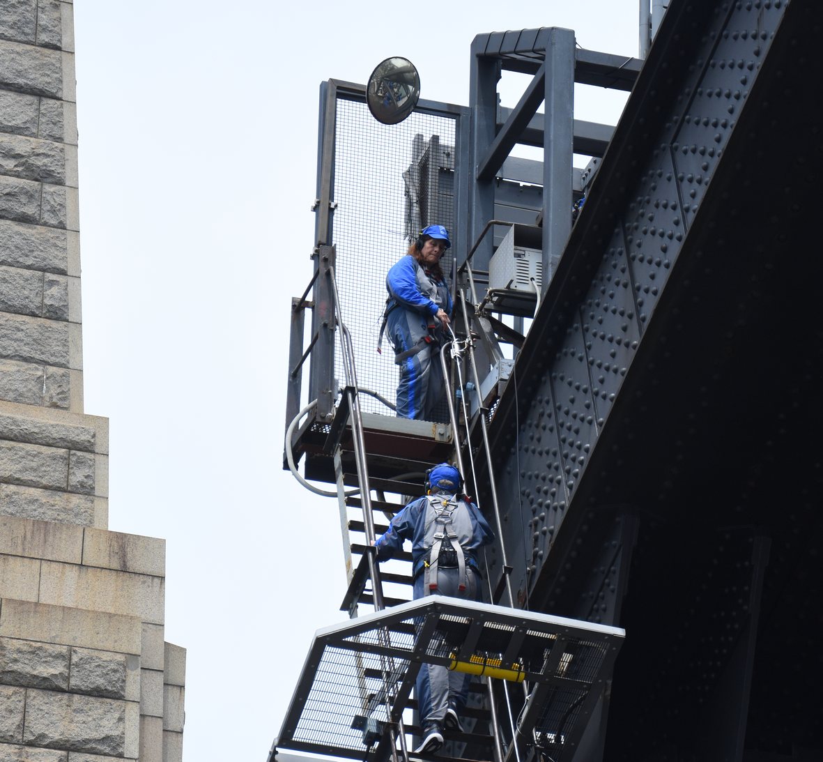 On aurait pu pousser l’aventure jusqu’à grimper sur la structure même… à condition de débourser au minimum 200 euros par personne. La montée est encadrée et se fait dans de strictes mesures de sécurité, mais à sentir le vent sur la voie piétonnière je me disais que tout là-haut il fallait certainement se cramponner !