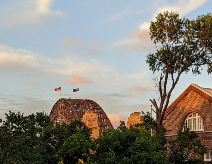 Pendant les quelques jours passés à Sydney, nos pas nous ont menés plusieurs fois vers l’opéra pour l’admirer encore et encore. De près et de loin, sous un ciel bleu, gris ou blanc, peu importe. On ne s’en lasse pas ; le bâtiment qui semble flotter dans la baie de Sydney est tout simplement une merveille. Cela fait un demi-siècle que le Sydney Opera House se dresse à Bennelong Point – le 50e anniversaire a été fêté en octobre 2023 – mais on dirait qu’il date d’hier. Intemporel, classique, moderne, extravagant, élégant, unique… bref, un chef d’œuvre architectural. Et il est voisin d’un autre monument magistral, le Harbour Bridge, que je vous présente un peu plus loin.