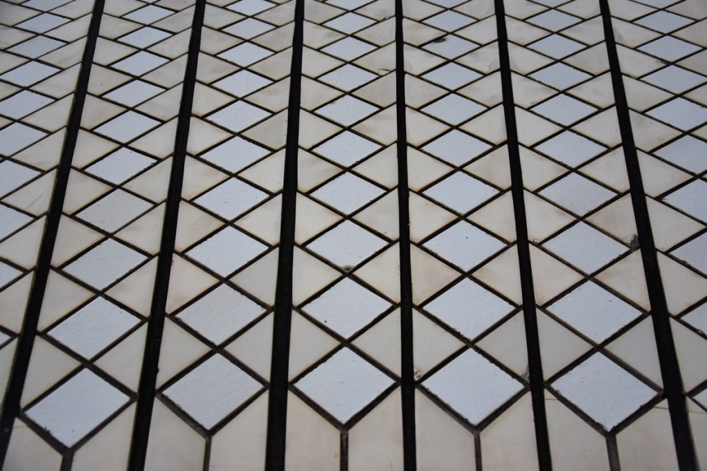 J’étais très surprise par le toit, ou plutôt les toits, ces formes incroyablement élégantes qui ont pourtant donné tant de fil à retordre pour passer du dessin à la réalisation ! Ces toits donc, qui de loin semblent d’un blanc brillant, uni, sont en fait couverts de plus d’un million de tuiles en céramique (précisément 1 056 006), qui ont été réalisées en Suède. L’agencement tient compte des différentes formes géométriques des tuiles, de leur surface (certaines sont mates d’autres brillantes), et d’un dégradé de couleurs très subtil.
