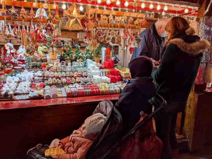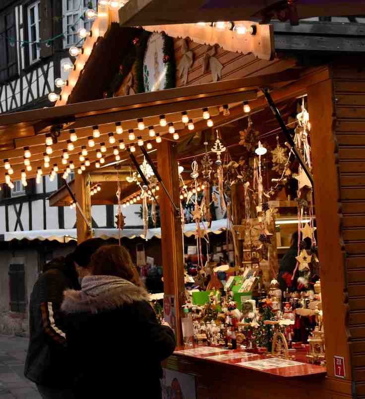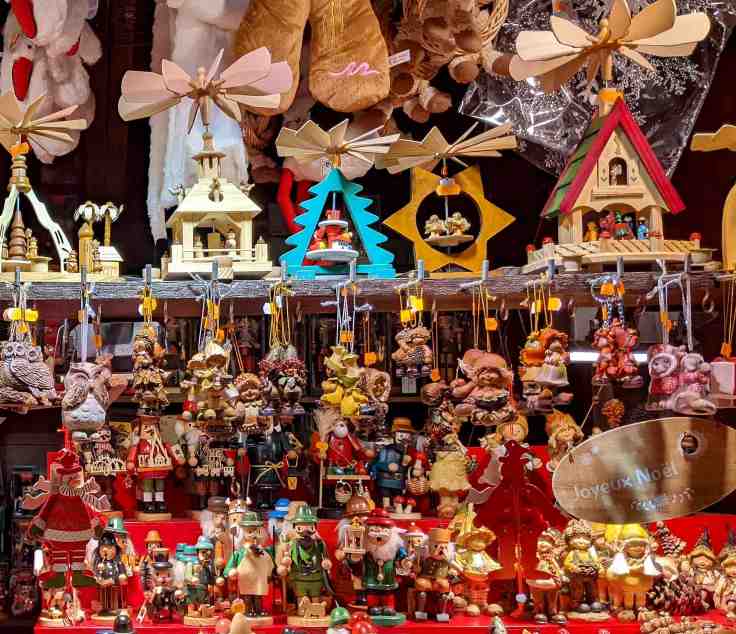 J’ai particulièrement apprécié les trois principaux marchés : autour de la cathédrale qui fournit un décor saisissant aux chalets ; place Kleber où se dresse un magnifique sapin haut de 30 mètres ; et sur la grande place Broglie, considérée comme le site historique du Christkindelsmärik (« Marché de l’enfant Jésus »).
