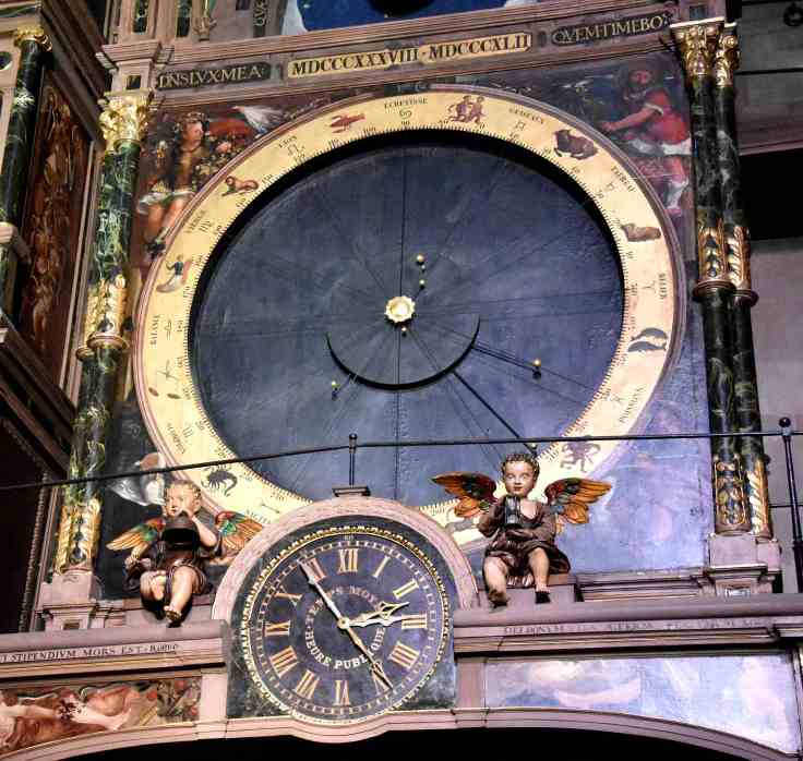Après la richesse de la façade, l’intérieur peut à première vue paraître austère. Il n’en est rien, ce sont de véritables trésors qui se révèlent les uns après les autres dans la pénombre : des vitraux du XIIIe siècle, une magnifique rosace d’un diamètre de 14 m datant du XIVe, des statues d’une grâce inégalable et bien sûr l’extraordinaire mécanique de l’horloge astronomique (1547), une merveille qui s’anime tous les quarts d’heures.