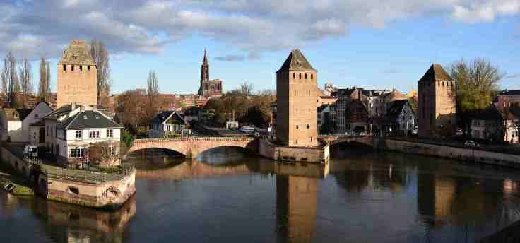 Une terrasse panoramique sur le toit du barrage offre de très jolies vues notamment en direction de la Petite France et des anciens ponts couverts et fortifications dont il ne reste que quelques tours. Au loin, la cathédrale domine la ville… quelle vue !