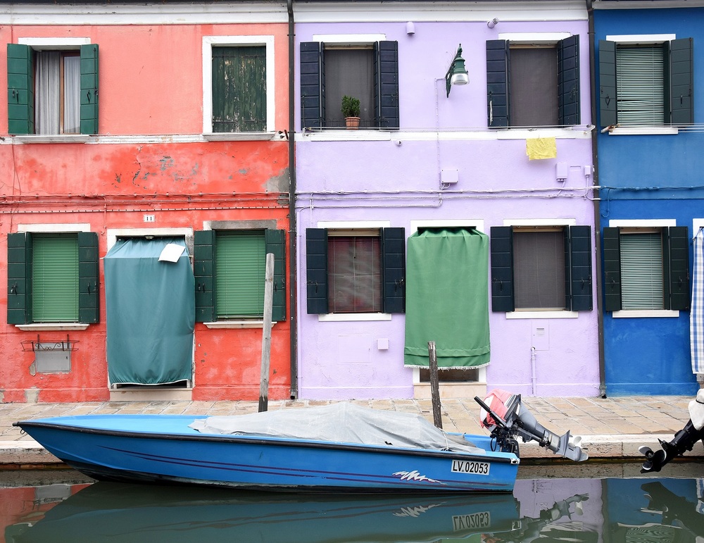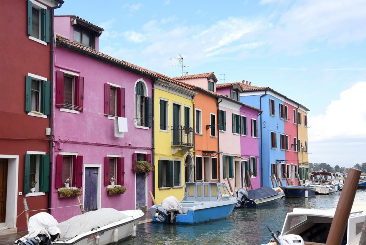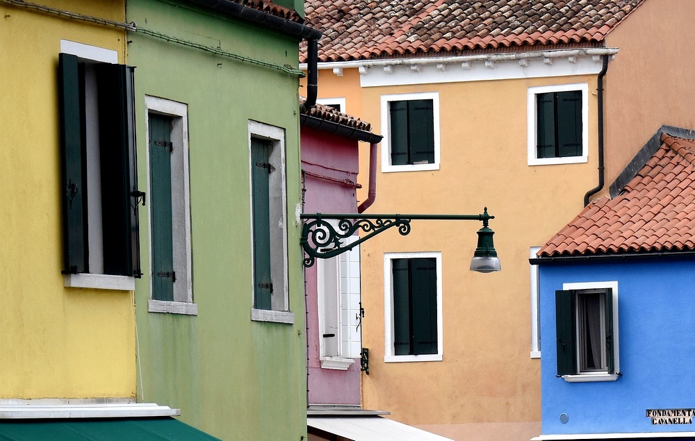 Mais je n’en connais qu’une qui offre une véritable explosion de couleurs éclatantes. Je parle bien sûr de Burano, sur son île dans la lagune de Venise. On ne sait pas exactement pourquoi cette tradition a commencé – utilisation de fonds de peinture pour les bateaux ? aider les pêcheurs à retrouver leur maison dans la brume ? -, mais elle perdure. D’ailleurs les habitants de Burano doivent veiller à ce que les façades soient toujours impeccables, quitte à les repeindre tous les ans ou presque.