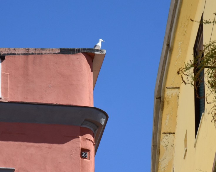 C’est vrai, il y a beaucoup de couleurs dans les villes italiennes. A Naples, j’ai aimé ce joli jeu de couleurs où le jaune et le rose se répondent, séparés par une bande de ciel du bleu le plus pur.