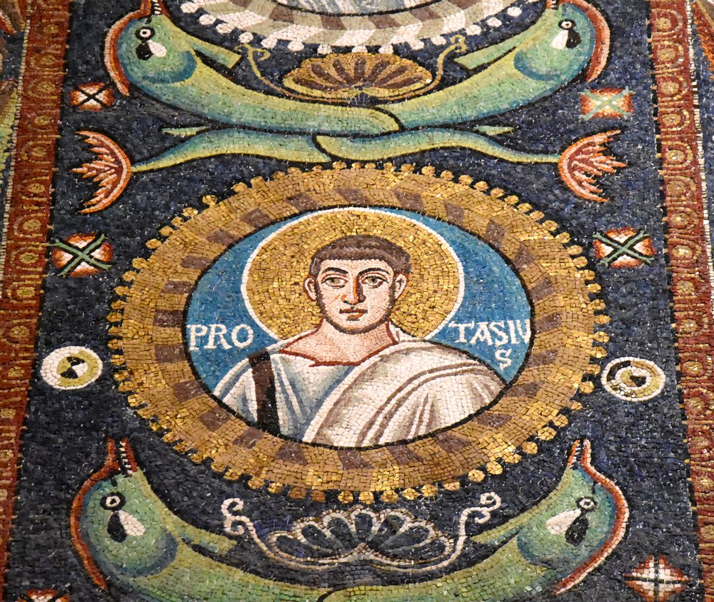 Quelques-uns des moments les plus marquants de mon dernier voyage en Italie, je les dois aux mosaïques de Ravenne. Cela faisait longtemps que nous avions Ravenne, une ville du nord de l’Italie, sur notre liste. A première vue rien ne distingue cette ville d’environ 155 000 habitants mais elle cache des trésors inouïs : des bâtiments religieux des 5e et 6e siècles de notre ère, dont les intérieurs regorgent des mosaïques les plus sublimes que l’on puisse imaginer. A cette époque, l’ancien Empire romain était séparé en deux parties, empire d’Occident et empire d’Orient (empire byzantin), et c’est Ravenne que l’empereur byzantin Justinien (527-565) choisit comme capitale. L’empereur est représenté avec sa suite sur cette mosaïque de la basilique San Vitale (6e siècle), une des plus célèbres que beaucoup d’entre nous ont connue dans nos livres d’histoire.