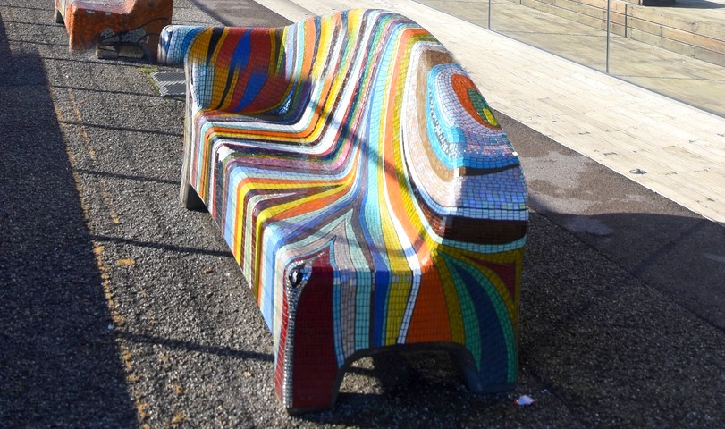 Et j’ai été surprise de voir que les mosaïques constituent non seulement un patrimoine du passé dont les habitants de Ravenne sont fiers, à juste titre, mais aussi un patrimoine vivant, qui évolue : la mosaïque est partout ! J’ai vu de nombreuses plaques de rue, enseignes de commerces, œuvres d’art en mosaïque dans l’espace public.