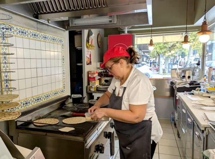 Autre spécialité, là aussi à manger dans la rue ou en tout cas sur le pouce : la piadina romagna, spécialité de l’Emilie Romagne comme son nom l’indique. Je l’ai découverte à Ravenne où elle est préparée dans des stands ou restaurants à emporter un peu partout en ville. La piadina est une sorte de crêpe assez épaisse et croustillante, repliée sur sa garniture. Au choix : jambon, fromage, roquette, légumes grillés… le choix est vaste. Buon appetito !